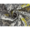 Ύφασμα βαμβακερό με ύφανση τζιν και μοτίβο λουλουδιών σε τρεις χρωματικές παραλλαγές: με λάιμ, μπλε και κόκκινο. Το ύφασμα αυτό περιέχει ελαστάνη, γεγονός που το καθιστά μαλακό και ελαστικό και προσαρμόζεται καλύτερα στο σώμα. Ιδανικό για την κατασκευή φορεμάτων, φούστες, παντελόνια, αξεσουάρ και παρελκόμενα.