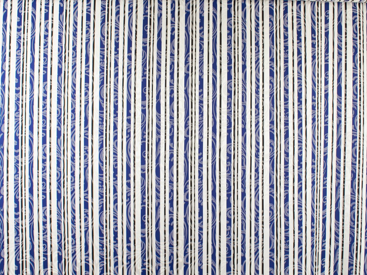 Ofrecemos seda jacquard de alta calidad con ornamentos en relieve. Suave, opaco, disponible en tonos azul y blanco. La tela es gruesa pero fluida, no es transparente.