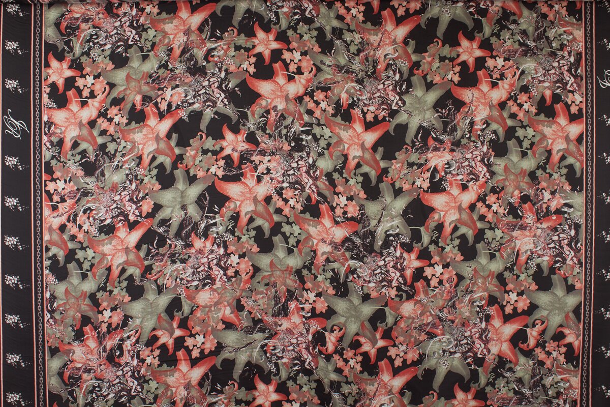 Esittelemme musta-punaisen kuvion kanssa varustetun silkki, jossa on nainen karusellilla kukkien keskellä. Italialainen materiaali on läpinäkyvä ja herkkä. Se sopii erinomaisesti huivien ja kevyiden puseroiden ompeluun. Ehdotamme vuorauksen lisäämistä (kuvissa on tummempi vuori paremman vaikutuksen saavuttamiseksi).