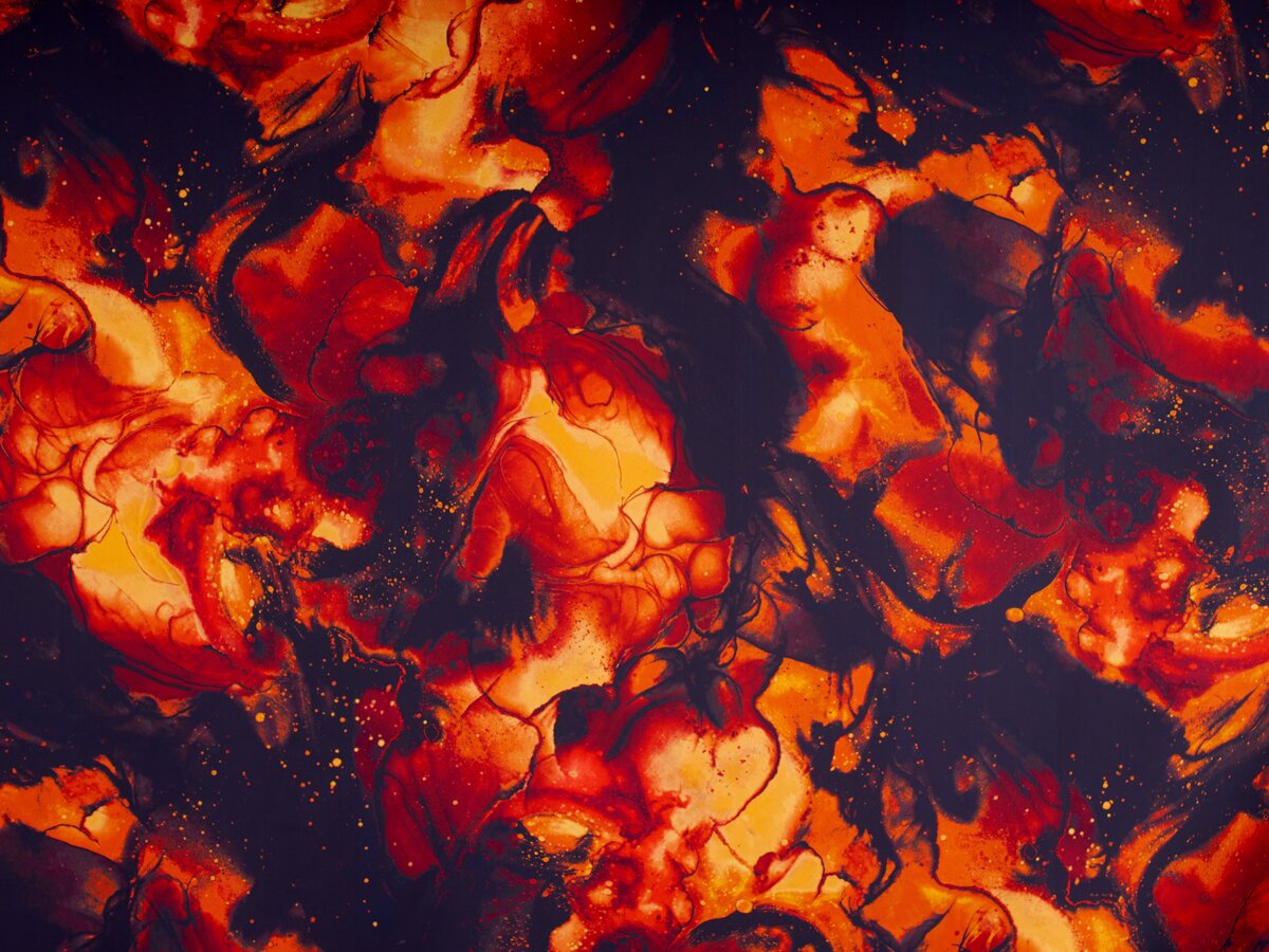 Magnifique satin italien délicat en demi-mat, idéal pour des styles nécessitant un tissu fluide comme de l'eau. Le motif nous a émerveillés et inspirés à passer une commande spéciale tirée de la collection volcanique. Nous avons donc deux propositions de couleurs pour vous : une plus calme qui évoque un coucher de soleil automnal se frayant un chemin à travers la brume du crépuscule, et la deuxième version, une lave orange ardente se solidifiant dans des couleurs de violets sombres et éteints, et de marengo, tout simplement un régal pour les yeux.