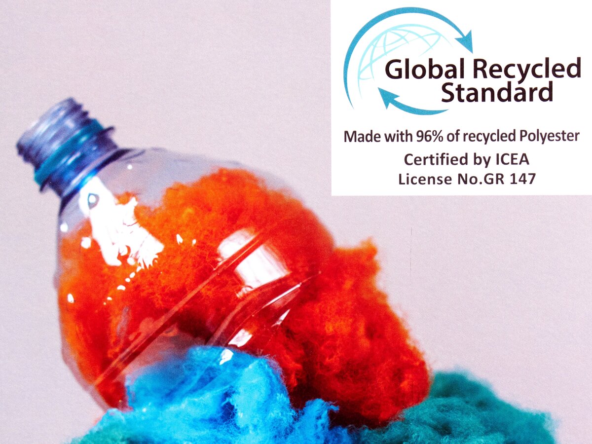 Sastāvs: 100% poliesteris, no kuriem 96% poliesteris ir iegūts no pārstrādātām PET pudelēm