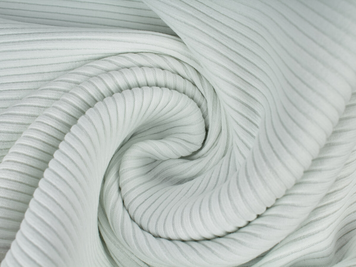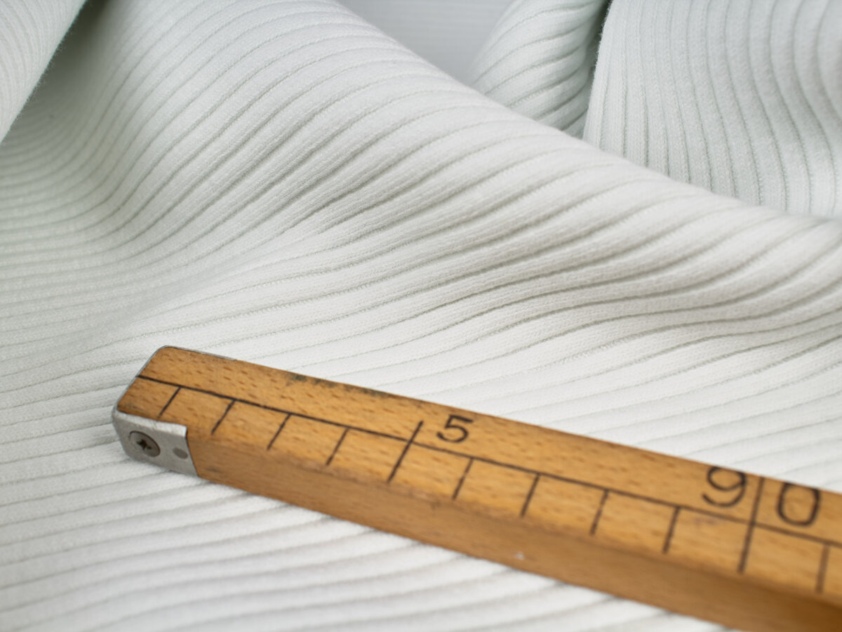 Wij bieden een hoogwaardige ribstof in de kleur wit met een brede rib en een grammage van 516g/1m lopend. De stof is stevig, dik en elastisch. Het materiaal statisch niet op en is huidvriendelijk.