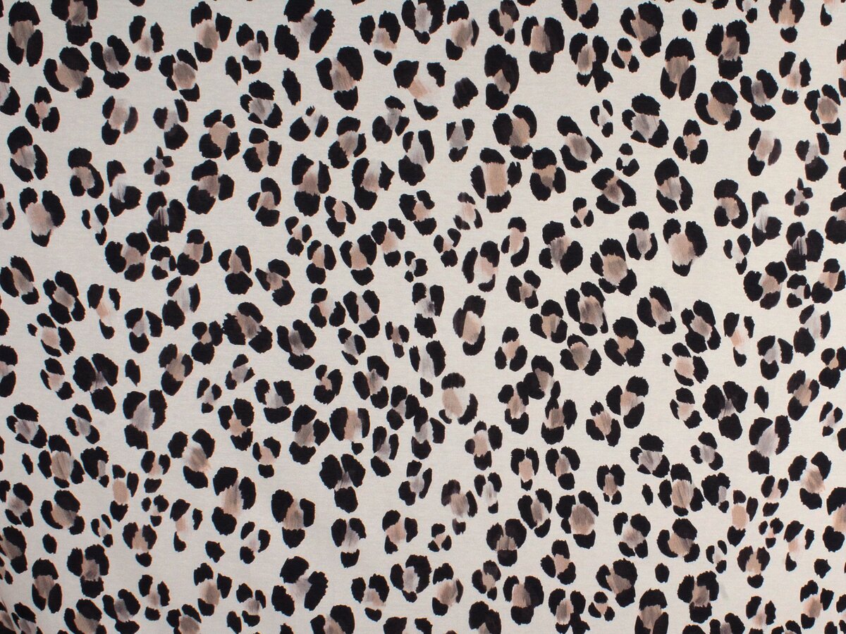 Oferujemy dzianinę bawełnianą z motywem zwierzęcym. Materiał jest lekki, pięknie się układa i delikatnie uciąga. Doskonały do uszycia modnych t-shirtów.