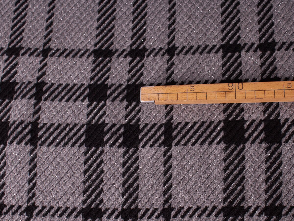 Oferecemos um tecido de alta qualidade xadrez com fio prateado. O material é grosso, encorpado e drapeia lindamente. Não é transparente, mas para um melhor conforto, recomendamos a adição de forro.